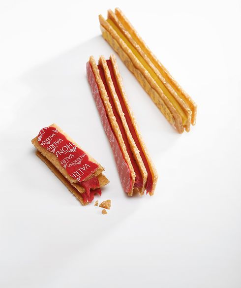 Valrhona harnessed decades of chocolate-making expertise to develop this technical feat which combines the unique texture of chocolate with the intense flavor and color of fruit and nuts.